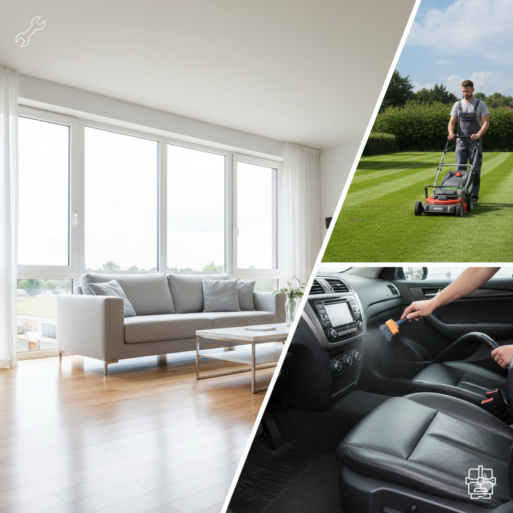✅ Māja & Dārzs: Logu mazgāšana, zāles pļaušana, teritoriju apsaimniekošana, telpu uzkopšana.